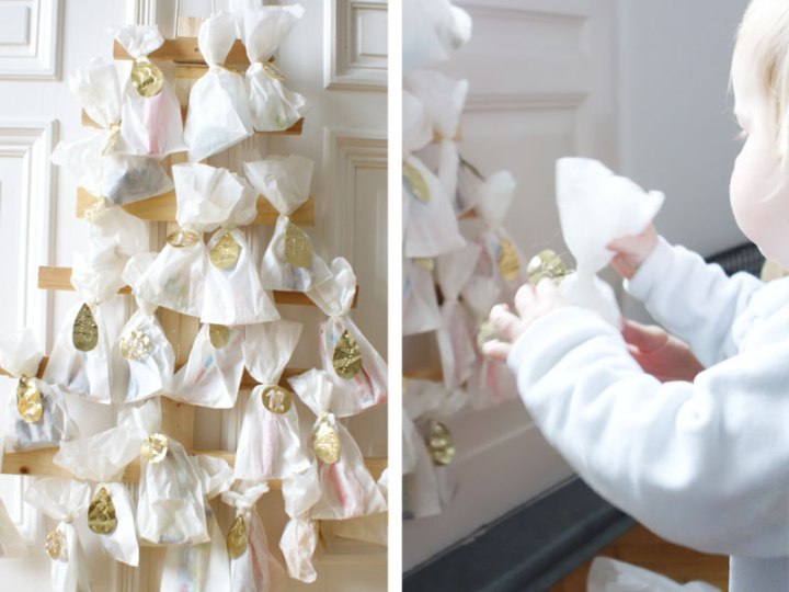 Zuerst war ich mir nicht sicher, ob man mit kurz über anderthalb Jahren schon einen Adventskalender braucht. Ich habe mich dann aber doch dafür entschieden, weil ich einfach neugierig war, wie der kleine Mann darauf reagieren würde! Und er fand’s natürlich großartig. Jetzt darf jeden Tag ein Päckchen ausgepackt werden, immer abwechselnd eins für den kleinen und den großen Mann …