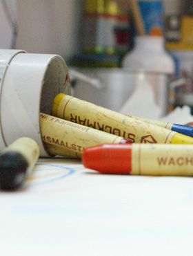Alle anderen, die keine Lust zu nähen haben, dürfen sich gerne mit knalligen Wachsmalstiften austoben! Einfach mal malen. Tut gut!