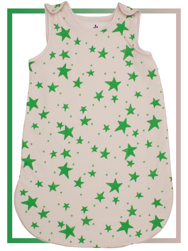 Noé & Zoë haben diesen hübschen Organic Cotton Schlafsack mit grünen Sternen für die Kleinsten in Größe S (entspricht 70 cm) der Osterklickerei spendiert.