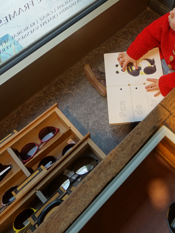 In der Dunckerstraße angekommen, erwartet uns schon Nicolette – und eine wirklich große Auswahl an Kinderbrillen, etwa von Dior, Tintin & Milou und Very French Gangsters …