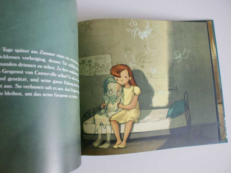 „Ich fürchte mich nicht“, sagte Virginia bestimmt. Mit einem leisen Freudensausruf stand da der Geist auf, ergriff ihre Hand mit Fingen so kalt wie Eis und führte sie durch das dämmerdunkle Zimmer:“