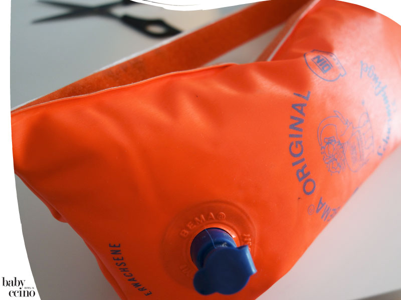Und wenn man sorgfältig entlang der äußeren Kante genäht hat, kann man den Schwimmflügel sogar noch aufpusten.