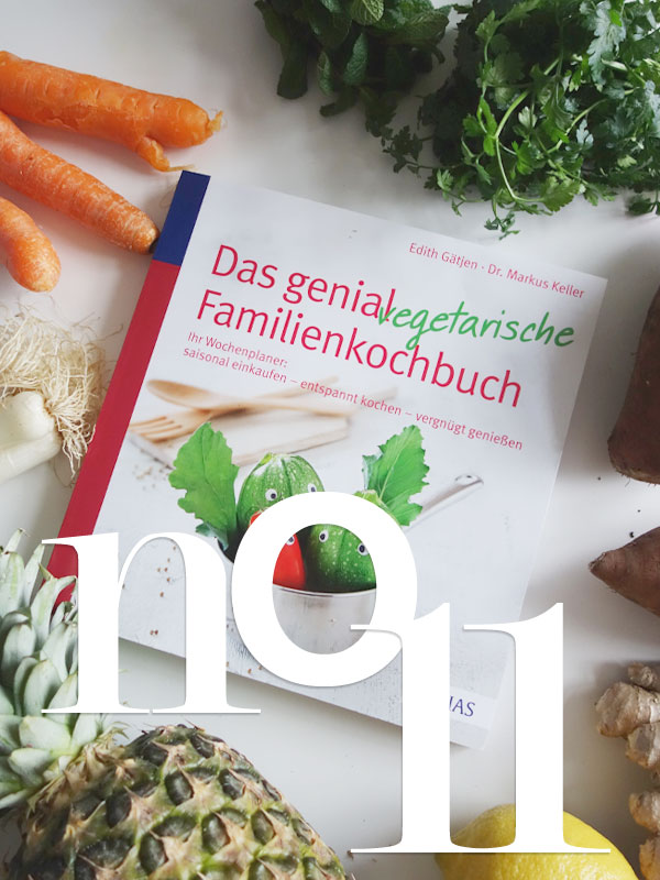 Jetzt aber zu dem tollen Kochbuch „Das genial vegetarische Familienkochbuch“ von Edith Gätjen und Dr. Markus Keller. Praktische Wochenpläne, Einkaufslisten für saisonale Lebensmittel und eine familienfreundliche Zubereitung verspricht dieses Buch, so soll die Essensplanung – Woche für Woche – zu einem Kinderspiel werden! Ähnelt also wirklich sehr unserem Konzept der wöchentlichen Speisepläne! Durch saisonale Rezepte kann nachhaltig gekocht und gesund gegessen werden.