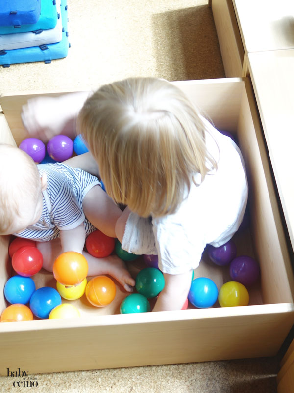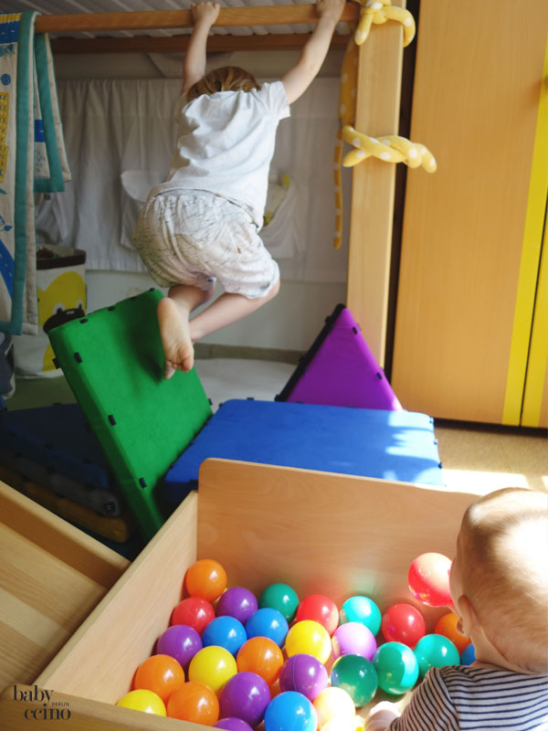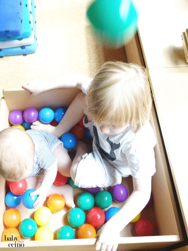 Am allerliebsten wird hier aber gerade gemeinsam gespielt ❤ Vincent war der erste im Bällebad, BabyE. konnte nicht schnell genug hinterher …