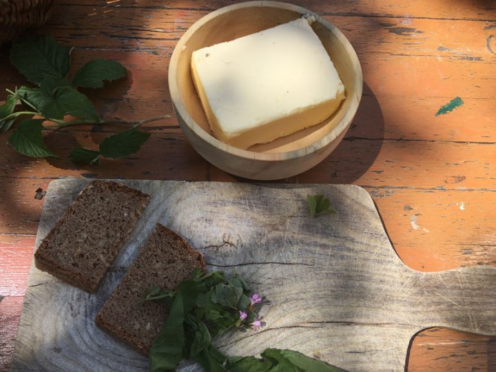 Neben einer kleinen Kräuterwanderung färbten wir am Feuer den Umhang für unsere Königskinder, den sie dann bei der Verabschiedung aus dem Kindergarten, dem „Rosentörlein“ tragen werden. Die Färbung geht mit einem Seidentuch sehr unkompliziert und das goldenen Gelb das entsteht ist so wunderbar, vielleicht möchte es der ein oder andere auch gerne versuchen.-