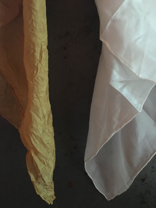 - Ihr braucht ein Tuch in Wunschgrösse aus reiner Seide in weiß, also ungefärbt