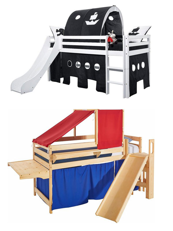 Sobald sich Geschwister ein Zimmer teilen, finde ich Hochbetten am praktischsten. Am besten solche, die nicht nur gut aussehen, sondern auch noch andere Funktionen als nur Schlafen erfüllen. Spielbar können sie sein: