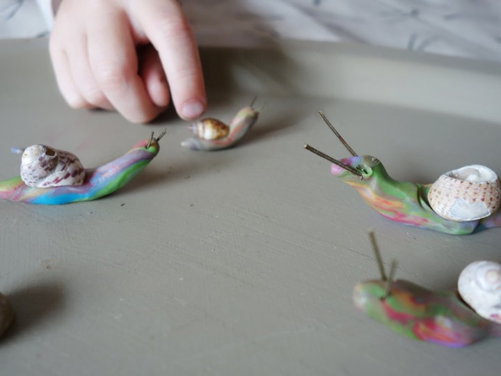 Die Geschichten beim Basteln kommen dann ganz von selbst, denn es gibt natürlich eine Mama- und Papa-Schnecke, eine die aussieht wie Oma, und den Opa-Schneckerich.
