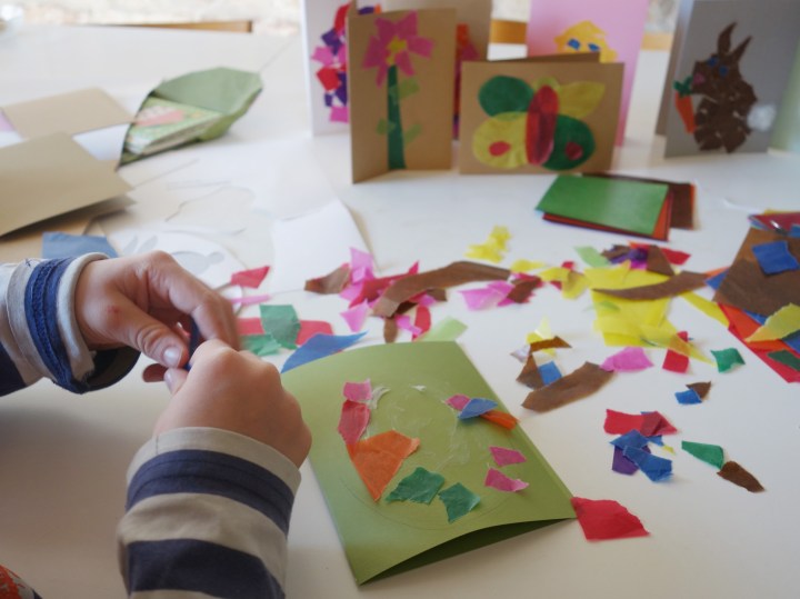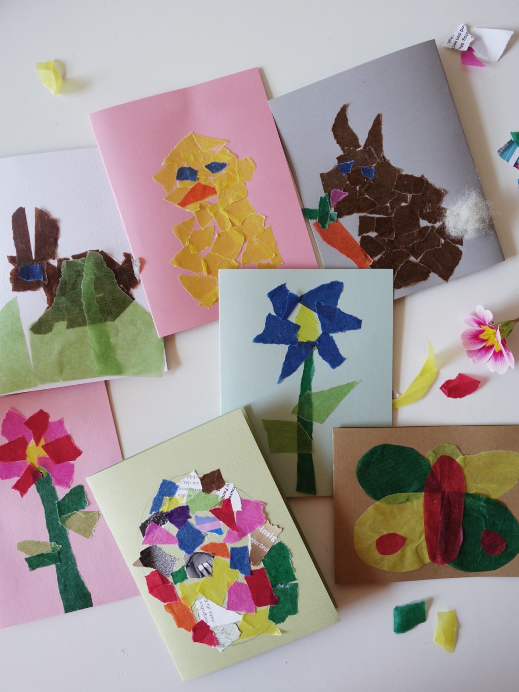 Dank Corontäne wurde in den meisten Familien bestimmt schon eine Menge gebastelt – zumindest bei uns 😉 Mit den Osterkarten haben wir trotzdem erst gestern angefangen … und die Motivation war anfänglich nicht besonders hoch. Dank der sehr einfachen Technik sind dann doch noch ein paar Karten gebastelt worden.