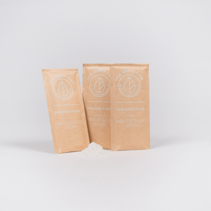 Wer auf Reisen lieber Duschgel statt fester Seife mitnehmen mag, der könnte sich sein Duschgel selber mixen, zum Beispiel mit dem Duschgelpulver von Less Waste: