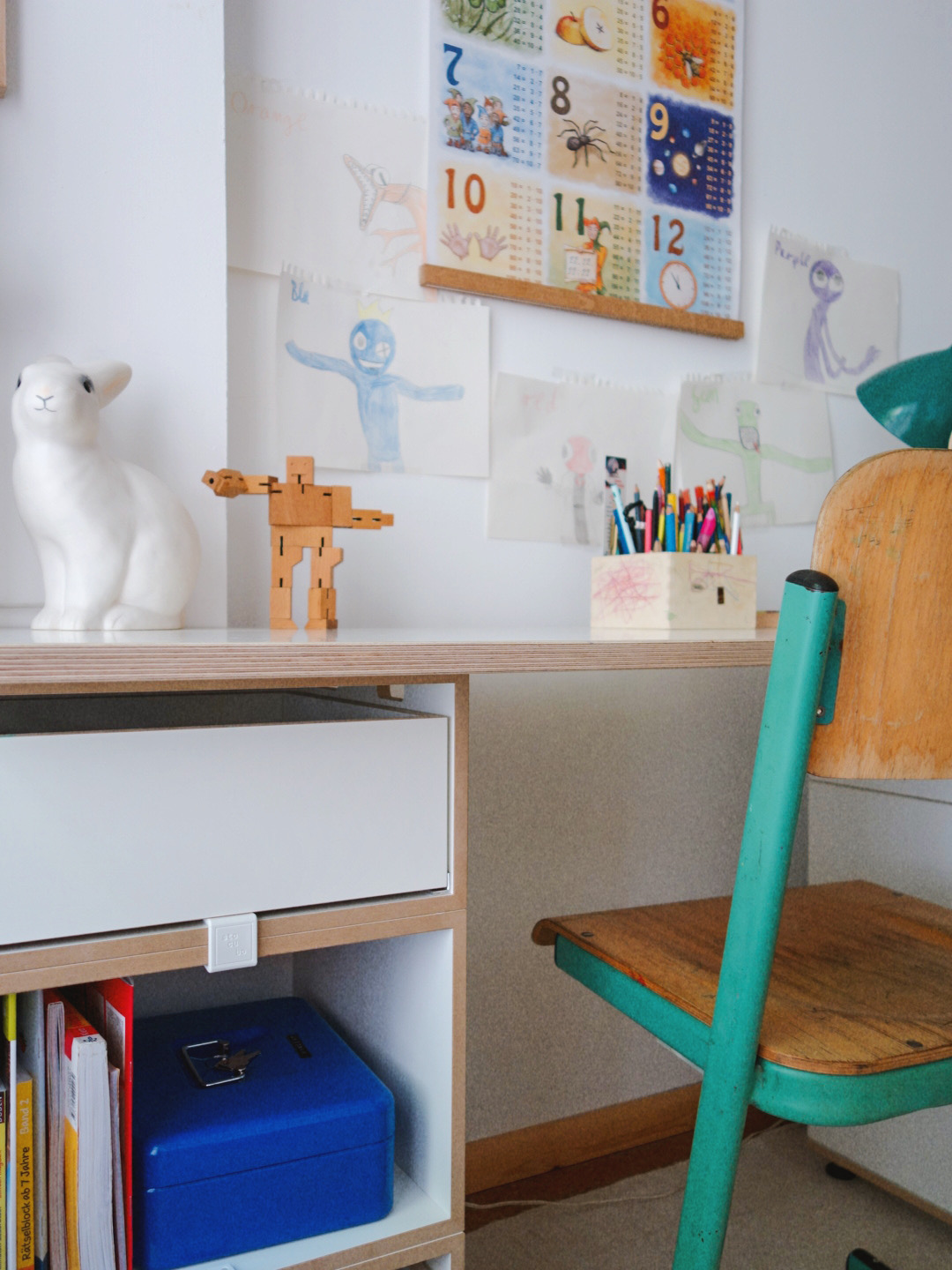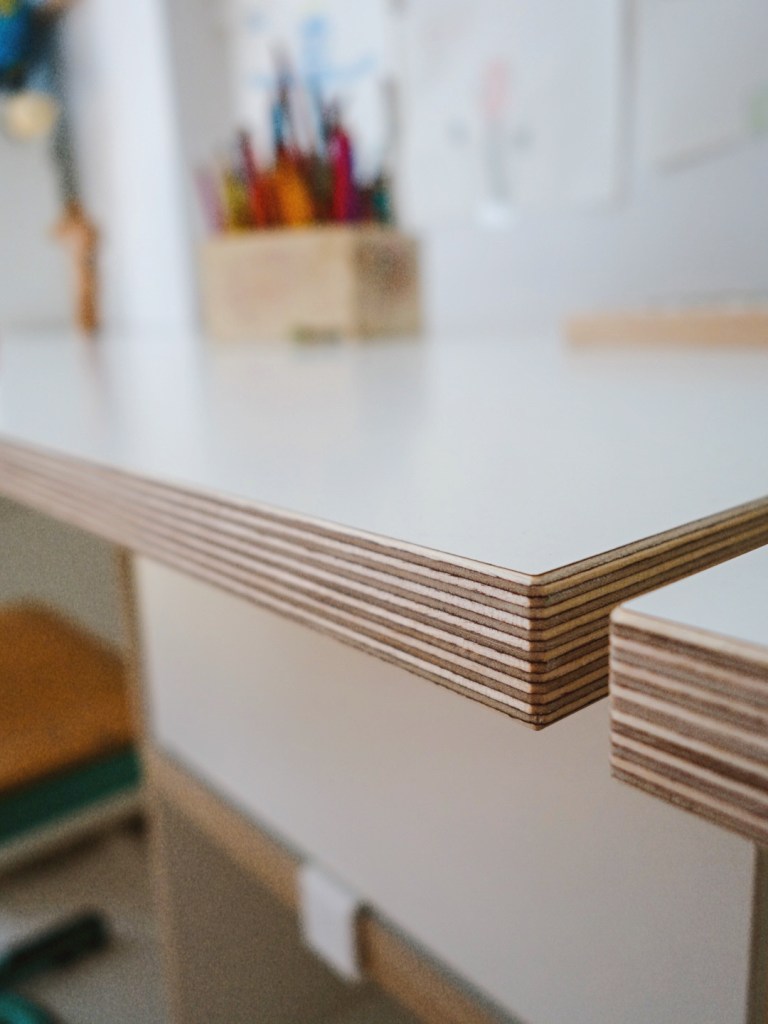 Und wisst ihr was? Durch das Wegnehmen zweier Module ist der Schreibtisch schon für die Kleinsten geeignet! Aus den nicht mehr benötigten Modulen kann man also zusätzlich noch ein Regal bauen, frei nach dem stocubo Motto: Aufbauen, umbauen, anders bauen.