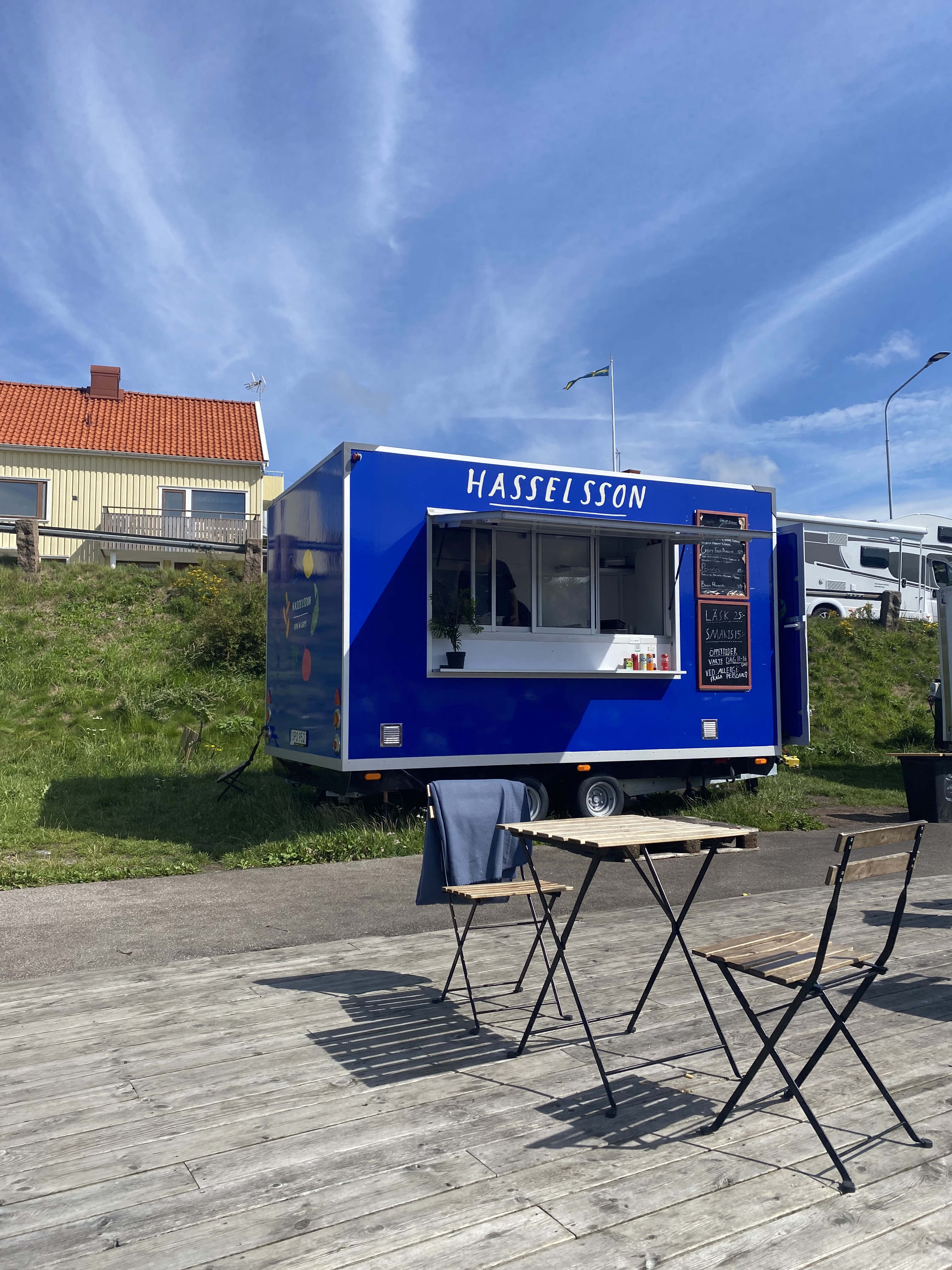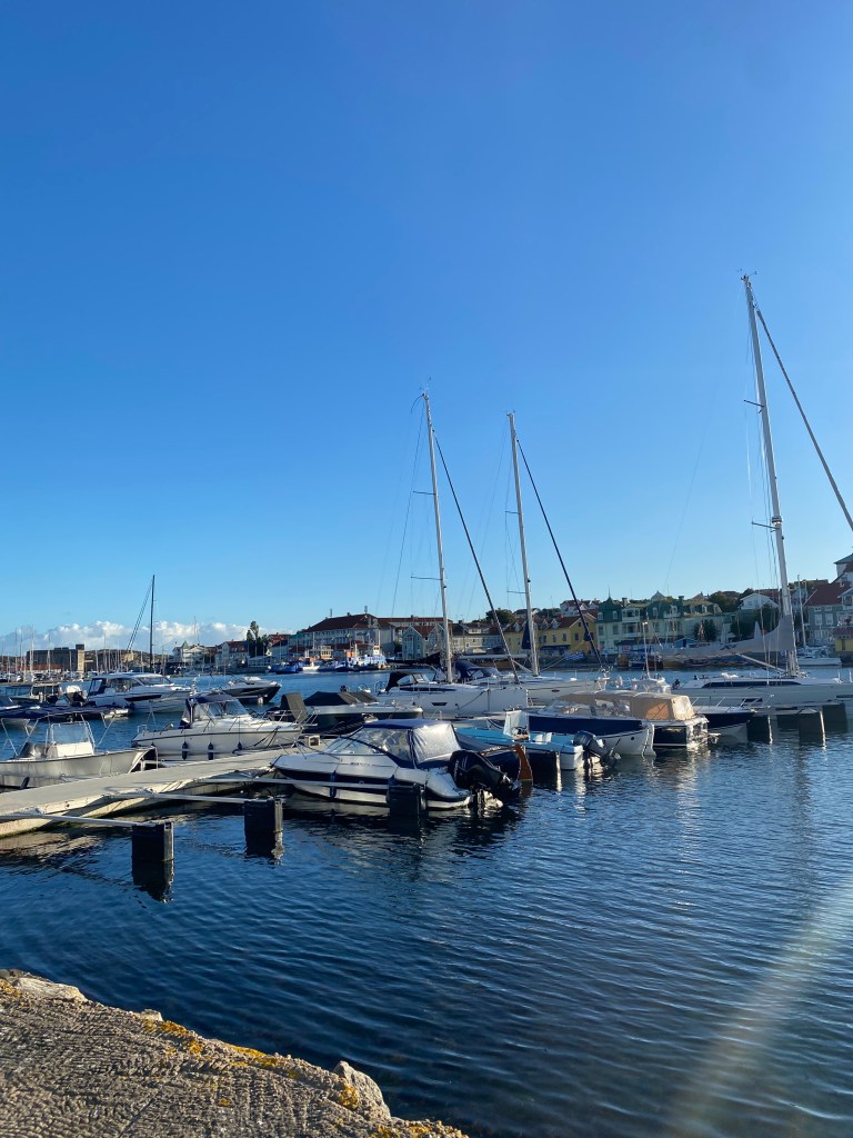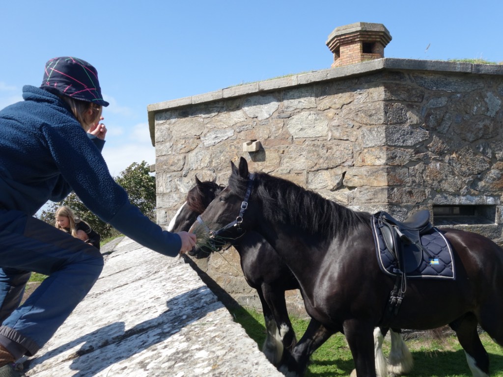 Um auf die autofreie Insel Marstrand zu kommen, sind wir vom Campingplatz aus mit den Rädern zum Hafen und dann mit dem Boot rüber auf die kleine Insel. Entdeckt haben wir einen kleinen Markt, jede Menge Pferde und einen unglaublichen Blick von der Festung Carlsten.