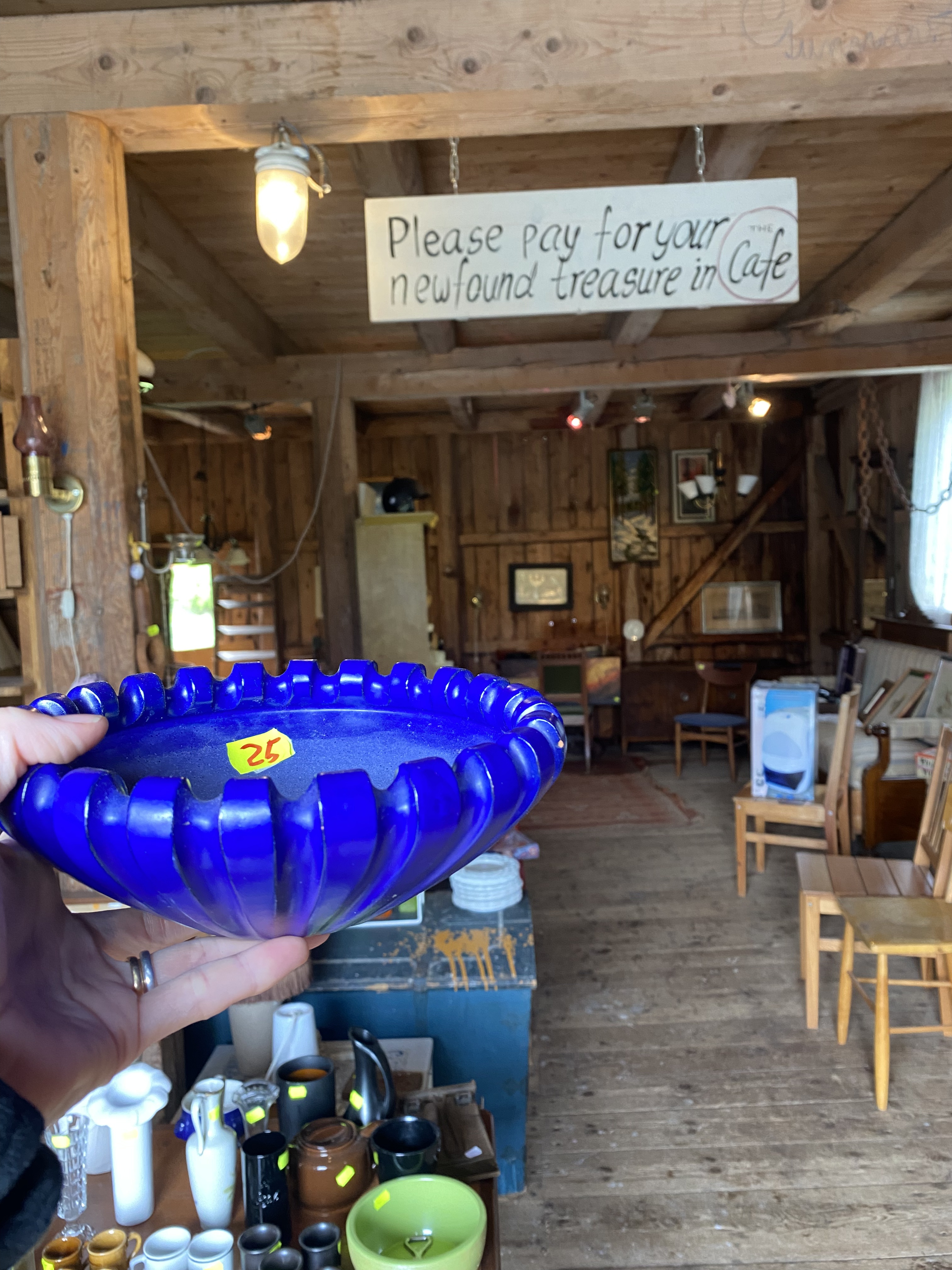 Auf dem Rückweg gab es dann den ersten und besten Kladdkaka (Alshults Handelsbod), den wir in den drei Wochen probieren durften. Neben dem kleine Café direkt am See (wo auch sonst) gab es natürlich auch eine Loppies Scheune. Loppies sind die berühmten Flohmärkte in Schweden, die es tatsächlich überall zu finden gibt, und mag der Ort noch so klein sein.